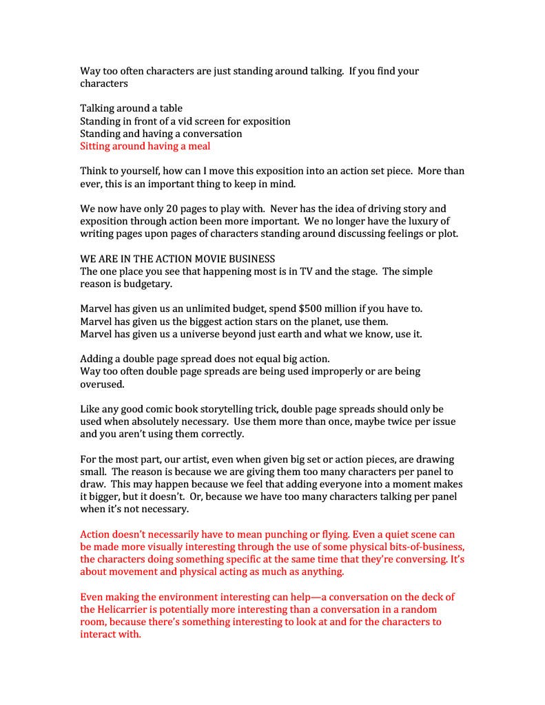 "This is a memo to the editorial staff that was half written by then-EIC Joe Quesada and half-written by me. It was complied from a couple of e-mails in a chain that went around at the time, and it’s all about the importance of not forgetting about the visual component of visual storytelling."
