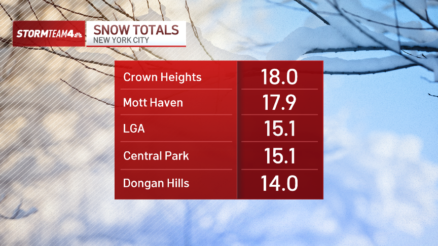 Currently or as of 10 a.m. Monday (it's about 11:42 AM now and yes still snowing):https://www.nbcnewyork.com/weather/weather-stories/how-much-snow-totals-inches-nyc-long-island-nj-accumulation-blizzard/6467598/
